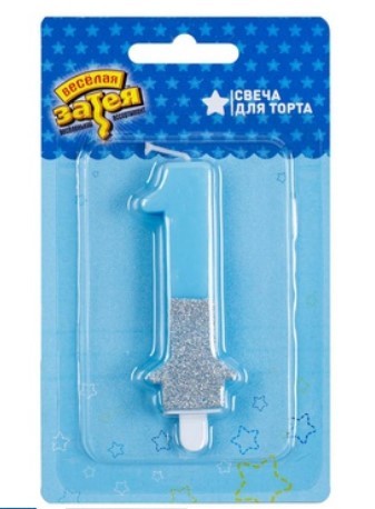 Свечи-цифры в нежно-голубом цвете с серебряным блеском для праздничного торта мальчику. Высота свечей 7,5 см, материал - стеарин.