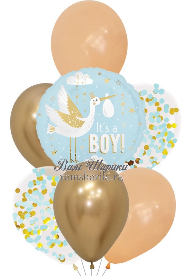 • - круг из фольги "Золотой аист для мальчика" 46 см 1 шт;