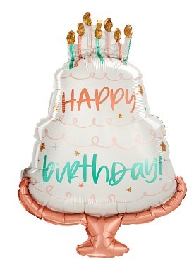 Фигурный шар из фольги на День Рождения девочкам или девушкам в виде торта белого цвета с мятными и персиковыми элементами. Размер фигуры 53Х71 см.