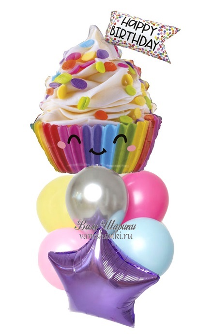 Набор шаров с гелием для девочки с кексом на День Рождения