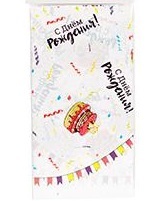 Одноразовая полиэтиленовая скатерть для оформления праздничного стола на День Рождения с тортиками. Размер 130х180 см.