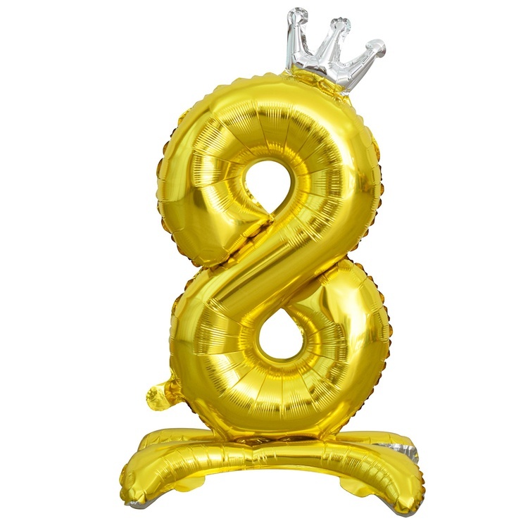 Фигурный шар из фольги в виде цифры 80 см (без учета наполнения) на специальной подставке, что очень удобно для декорирования сладкого стола или фотозоны. Данная цифра не летает, потому что наполнена воздухом. Цвет цифр золотой с серебряной короной