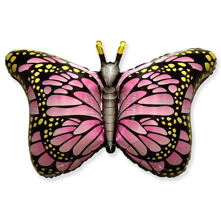 Фигурный шар из фольги с гелием в виде бабочки с оранжевыми крыльями. Размер фигуры без учета наполнения 56х97 см.