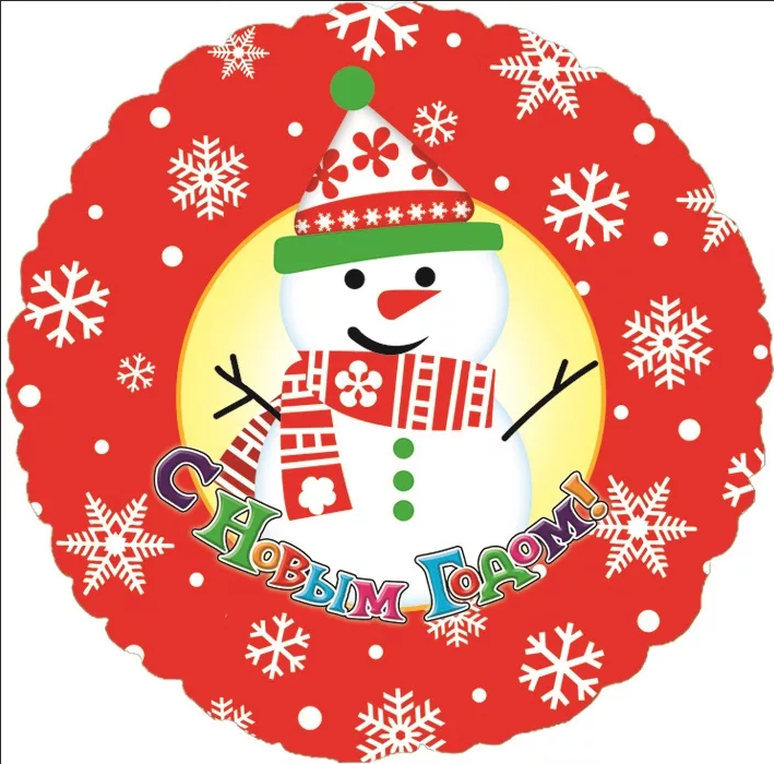 Фигурный шар из фольги с гелием с надписью - С Новым Годом и изображением снеговика, размер 46 см без учета наполнения.