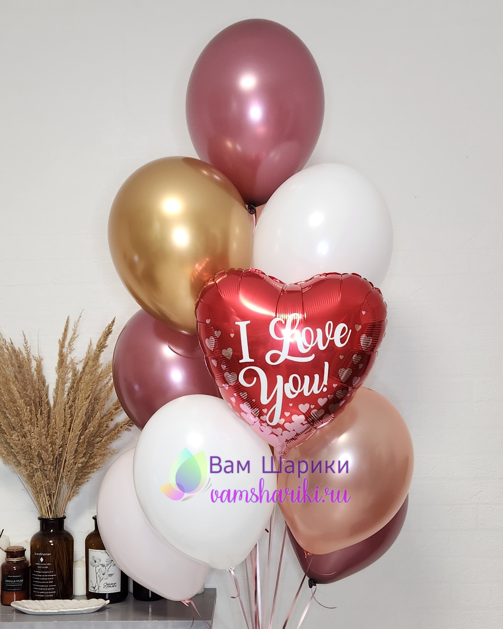 Стильный женский набор шаров для подарка на День Всех Влюбленных, День Рождения, годовщину или для предложения девушки. В составе букета: