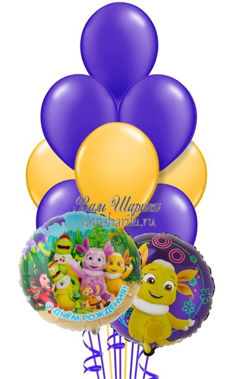 Прекрасный набор шаров с гелием на День Рождения детям с любимым героем Лунтиком. Состав букета: