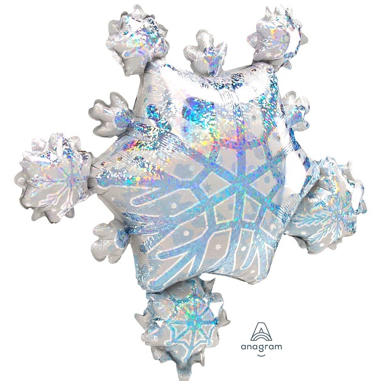 Фигурный шар из фольги с гелием в виде множества белых снежинок в одной фигуре с голографическим блеском. Размер 80х75 см без учета наолнения.