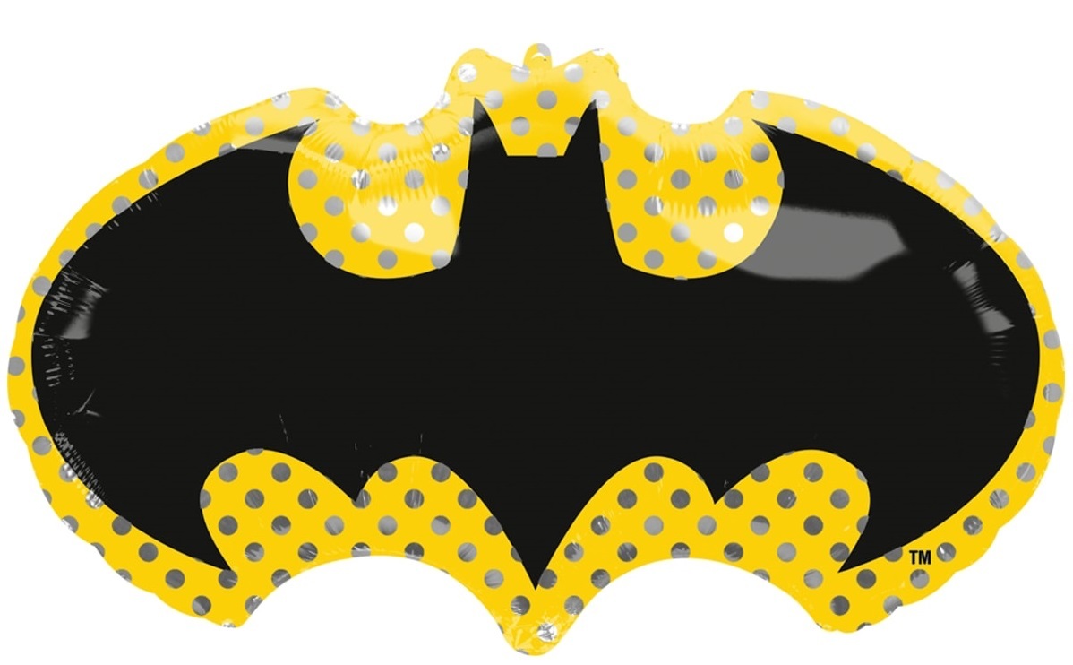 Фигурный шар из фольги с гелием в виде эмблемы Бэтмена - летучая мышь. Размер фигуры 76х43 см.