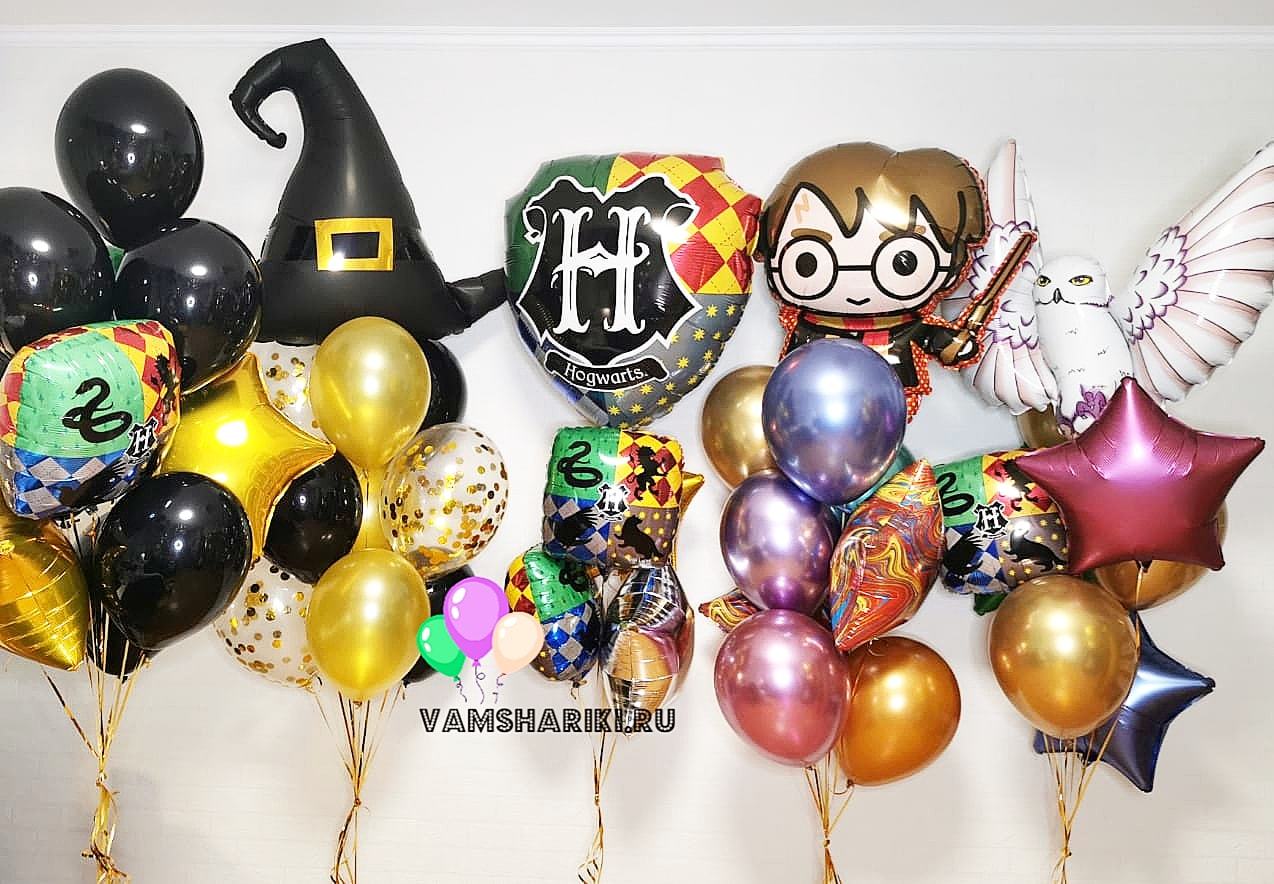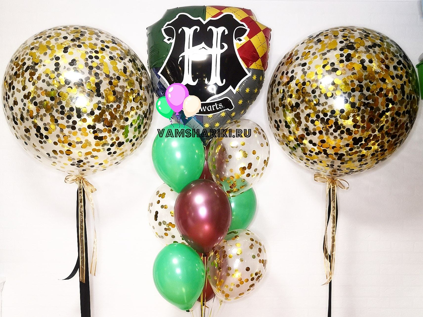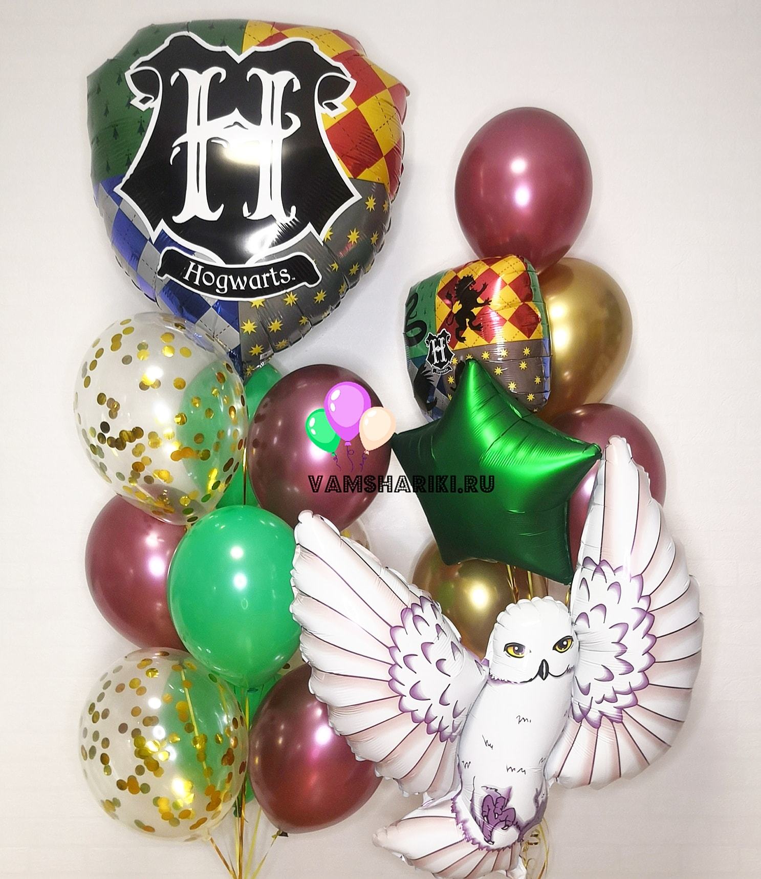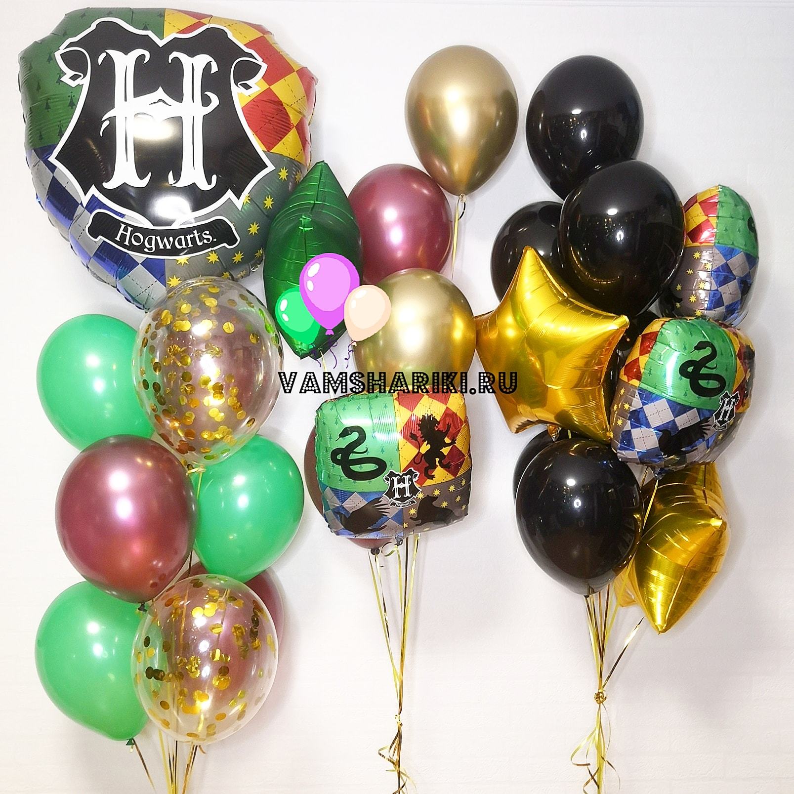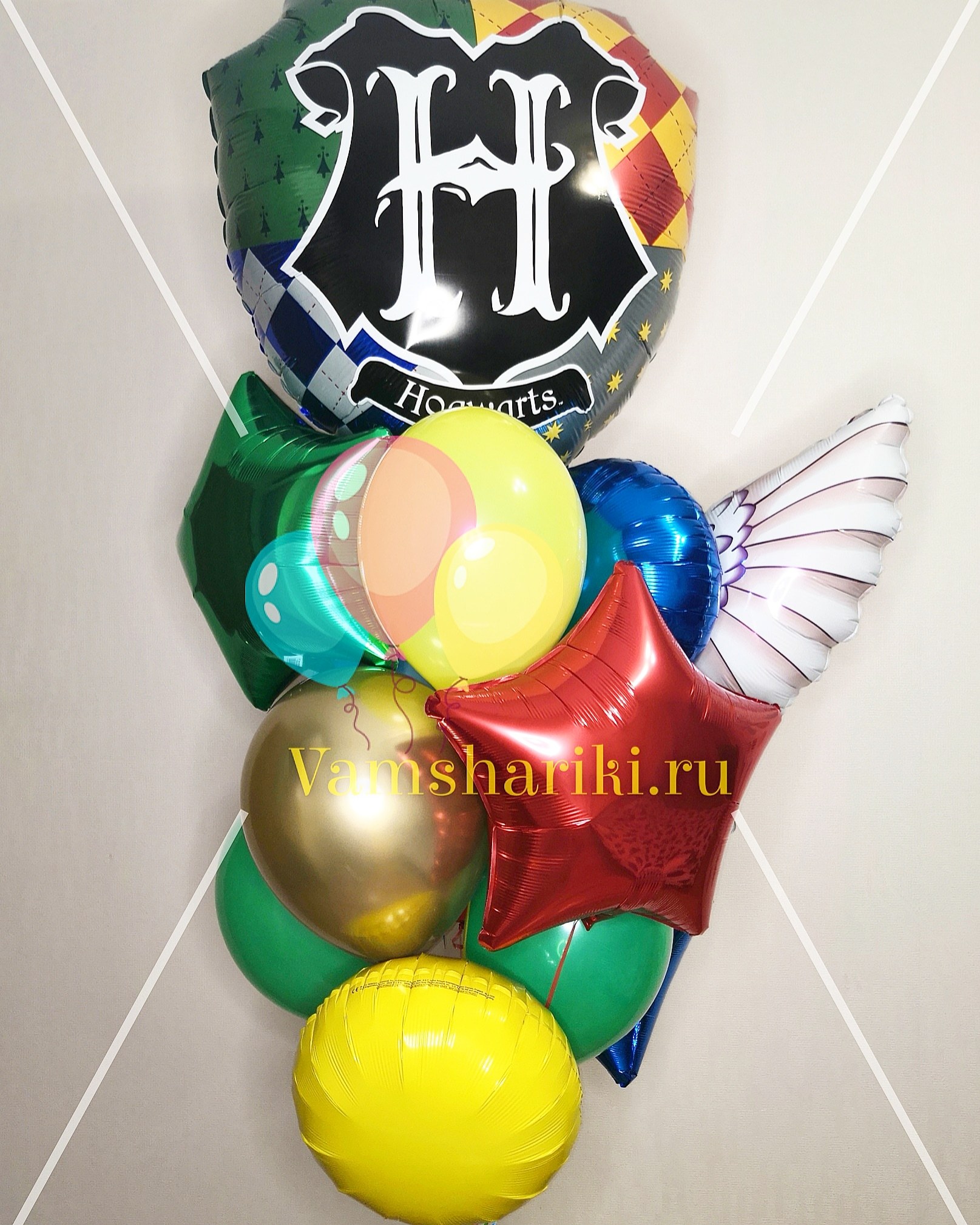 Фигурный шар из фольги с гелием в виде герба Хогвардса из Гарри Поттера, размер шара 68х63 см.