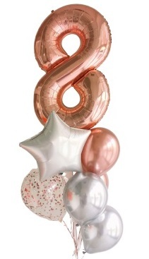 Букет из шаров с цифрой на 8 лет цвета розовое золото и серебро