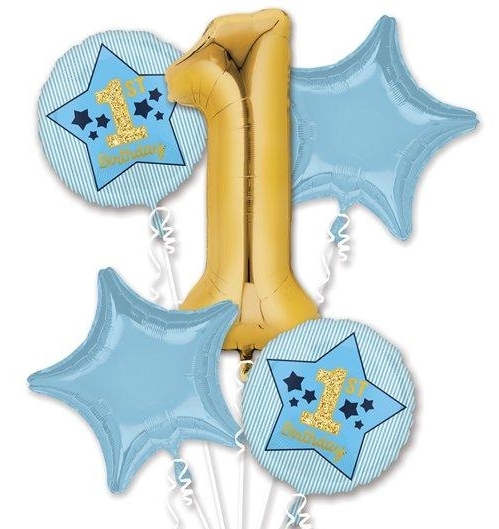 Фонтан из фольгированных фигур с гелием в голубых цветах для празднования Первого годика мальчика! Состав фонтана: