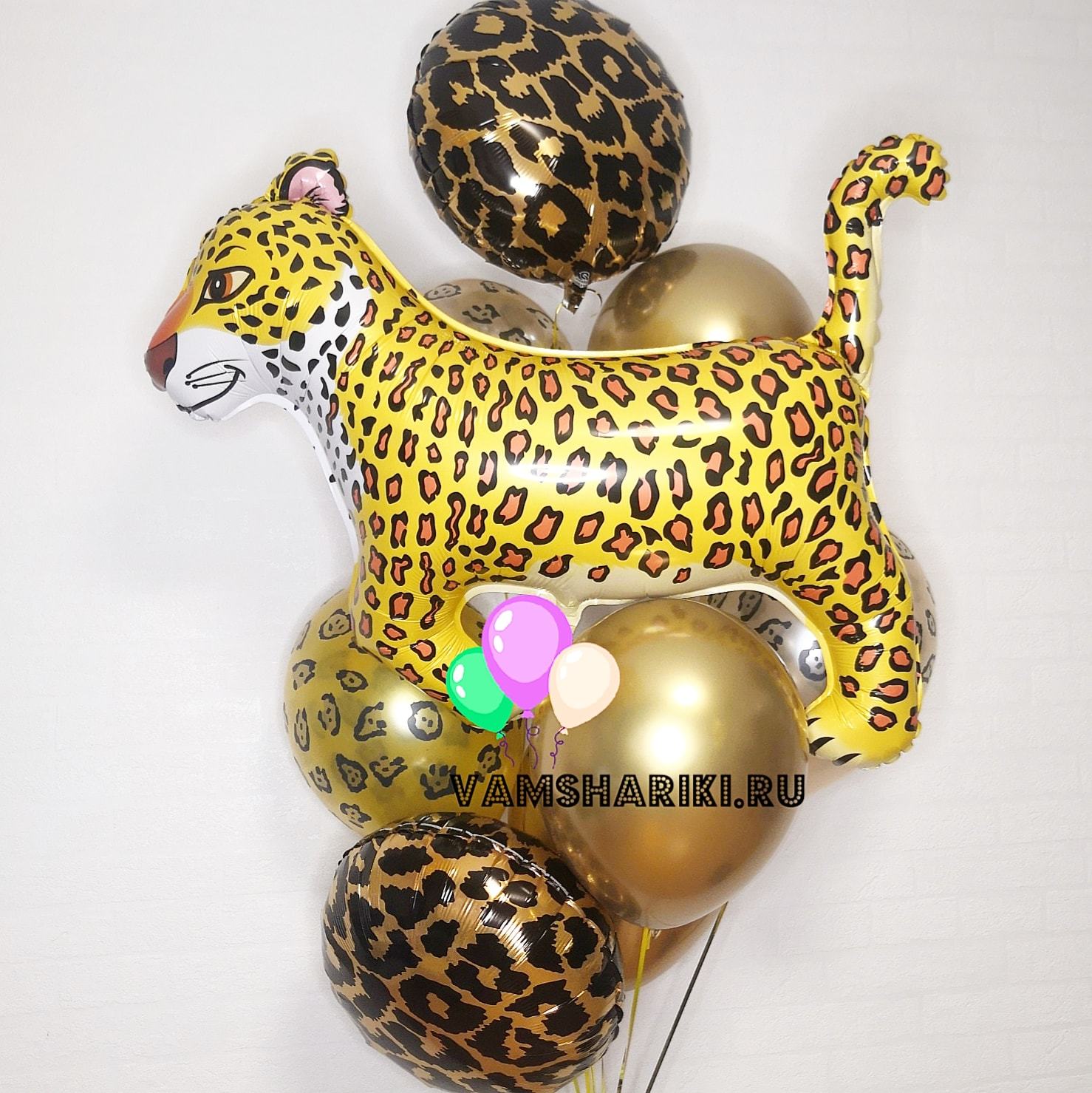 Фигурный шар из фольги с гелием в виде круга с грациозным принтом леопарда. Размер 46 см в не наполненном виде.