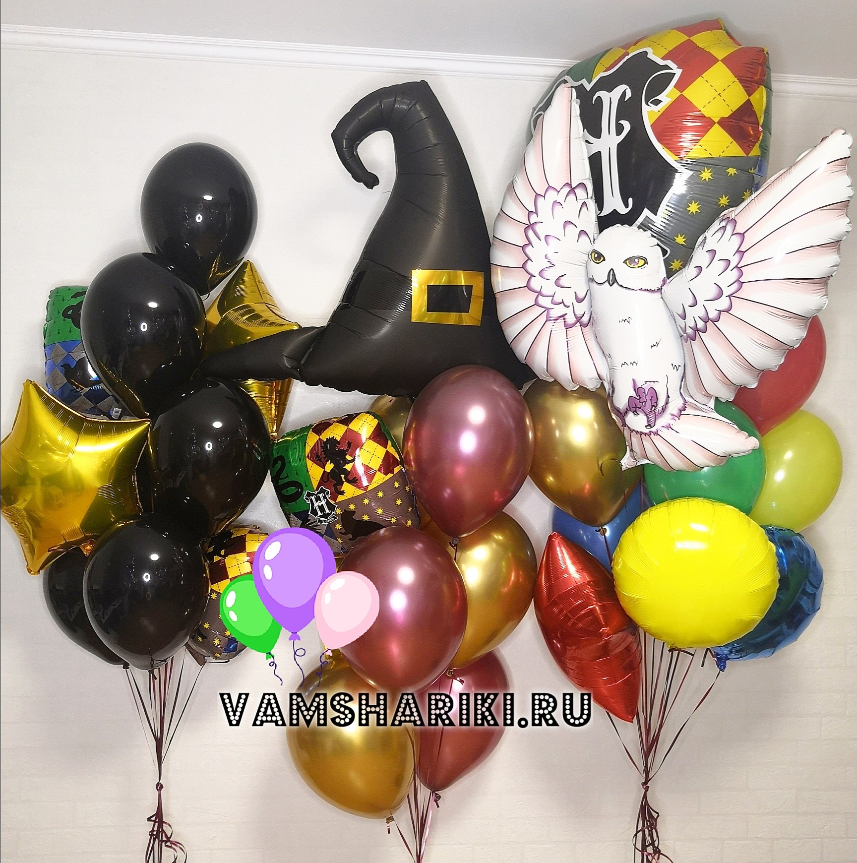 Фигурный шар из фольги с гелием в виде квадрата с рисунком из Гарри Поттера - эмблемы Хогвардса. Размер шара 46 см.