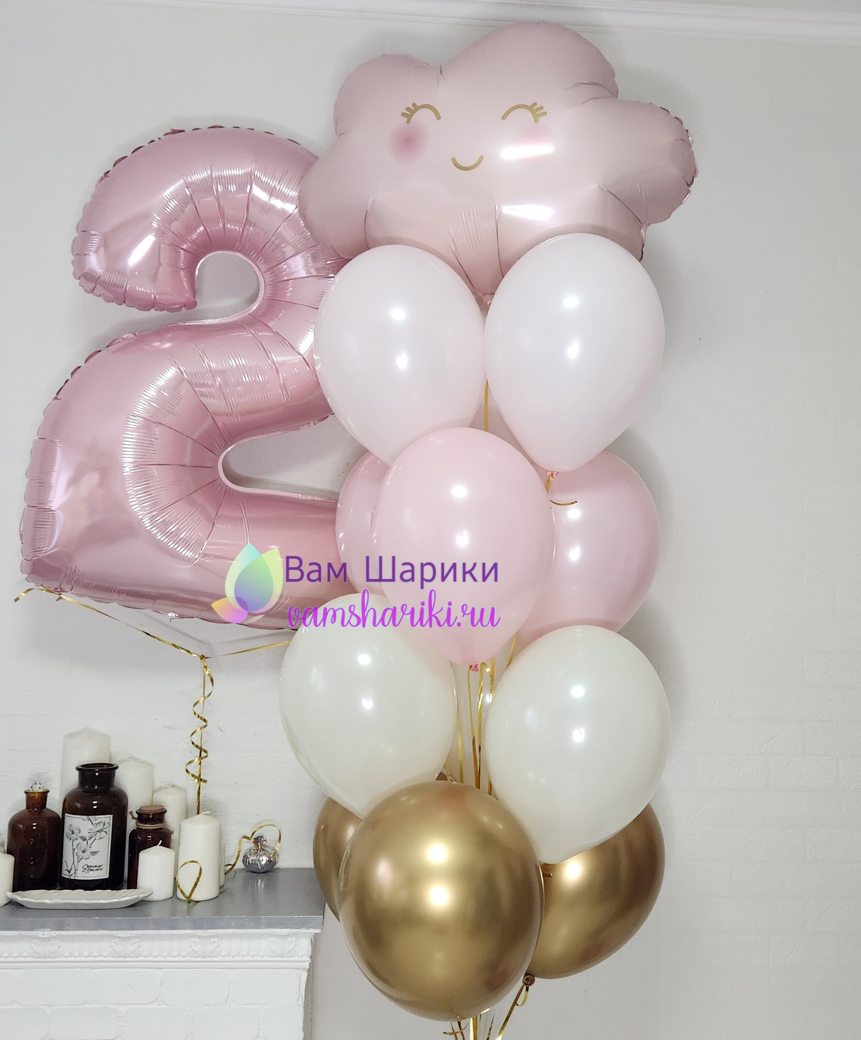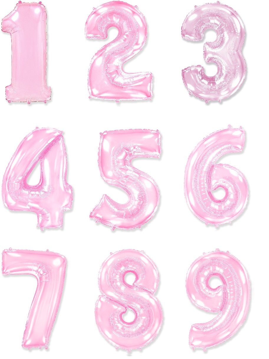 Фигурный шар из фольги в виде цифры нежно-розового цвета с блеском металлик, размер фигуры без учета наполнения 102 см. Каждая цифра доставляется наполненой гелием и установленой на грузик ручной работы.