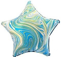 Фигурный шар из фольги с гелием в виде звезды с расцветкой мрамор - белый, синий и золото. Размер 46 см.
